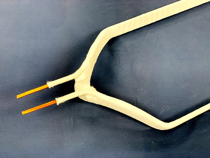100% Mica coverage under a single layer of Res-I-Flex tape, with high temp silicone applied under the exit leads, baked under the watchful eyes of our craftsmen
